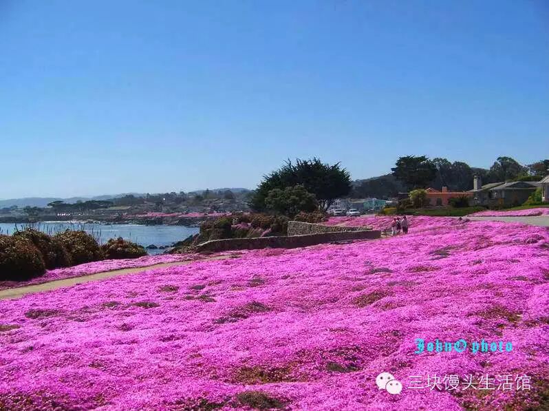 每年4、5月份,Lovers Point Beach岸边的Ice Plant会绽放出迷人的紫红色花朵,与蓝色的大海相映成趣。